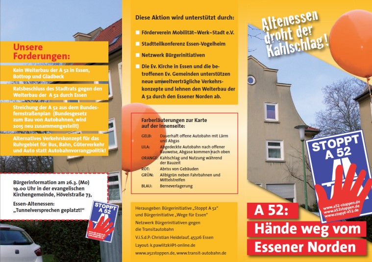 Bürgerinitiative "Stoppt A 52" über den aktuellen Planungsstand der Autobahn.